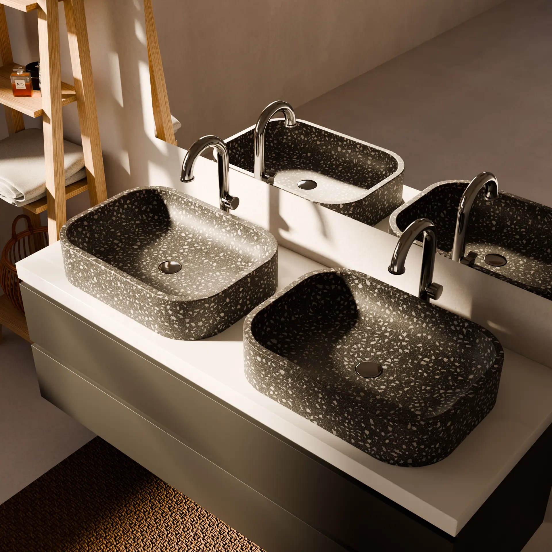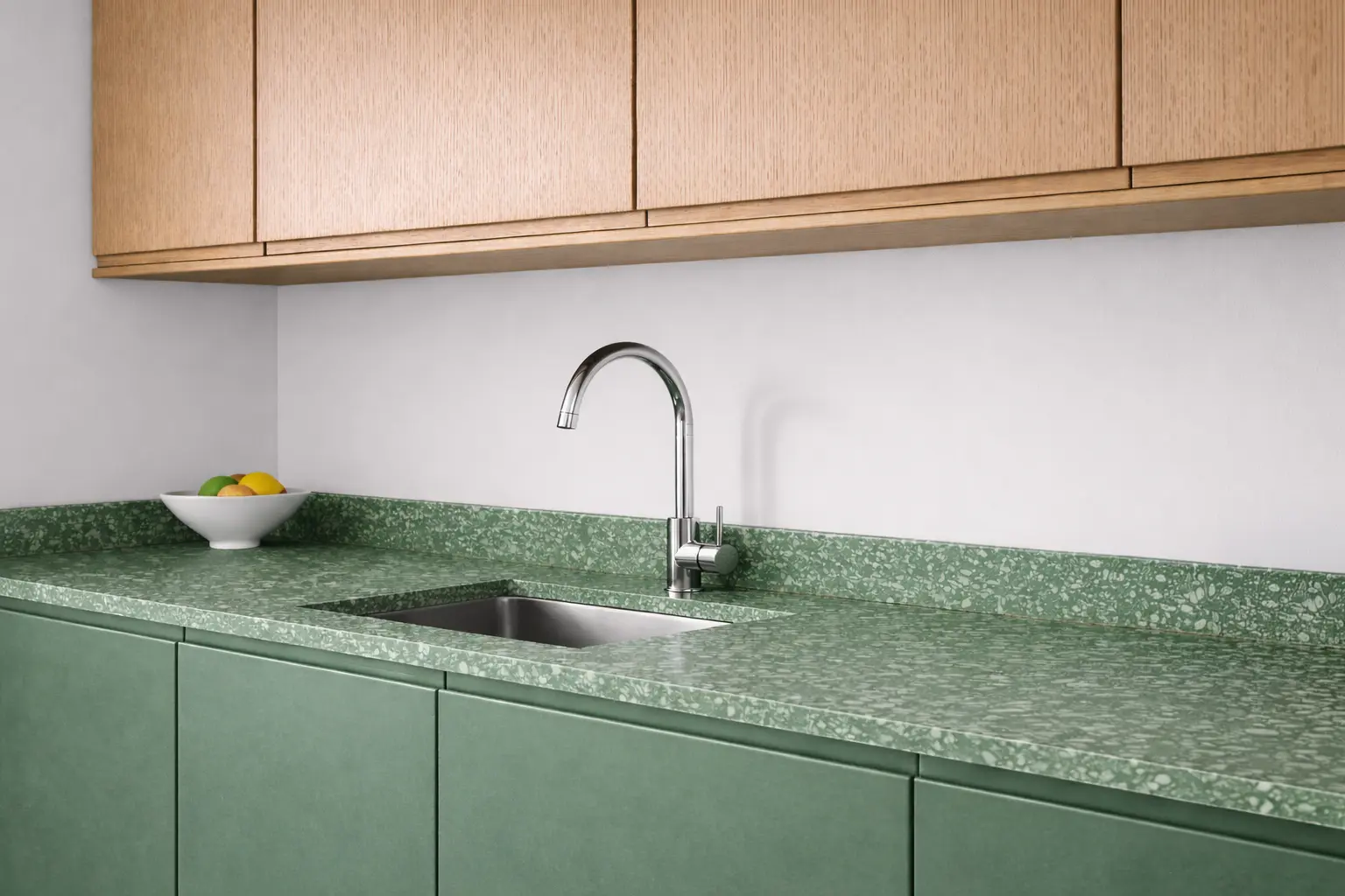 Transformation de débris de béton et minéraux (marbre, porcelaine, verre, terre cuite) en terrazzo robuste et élégant