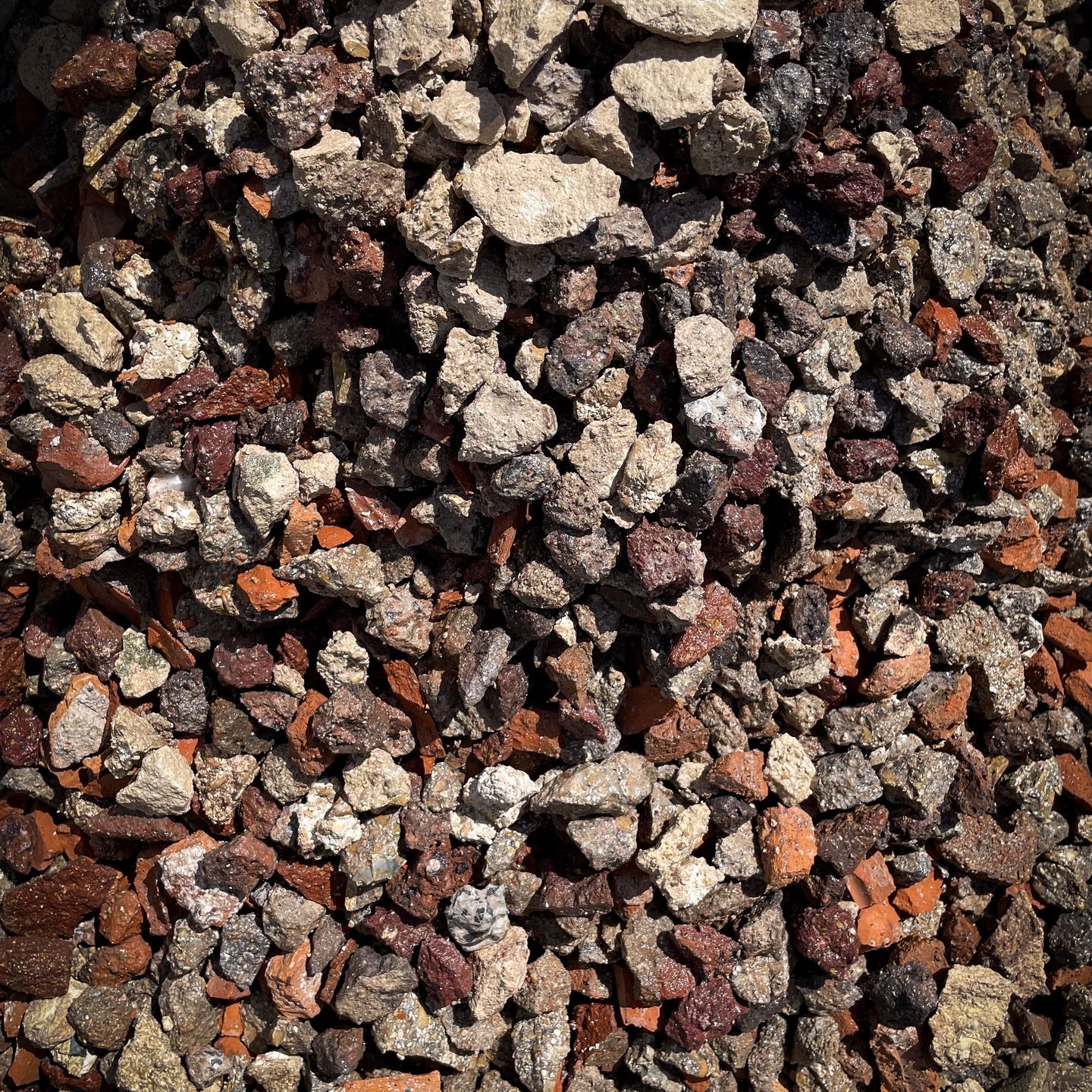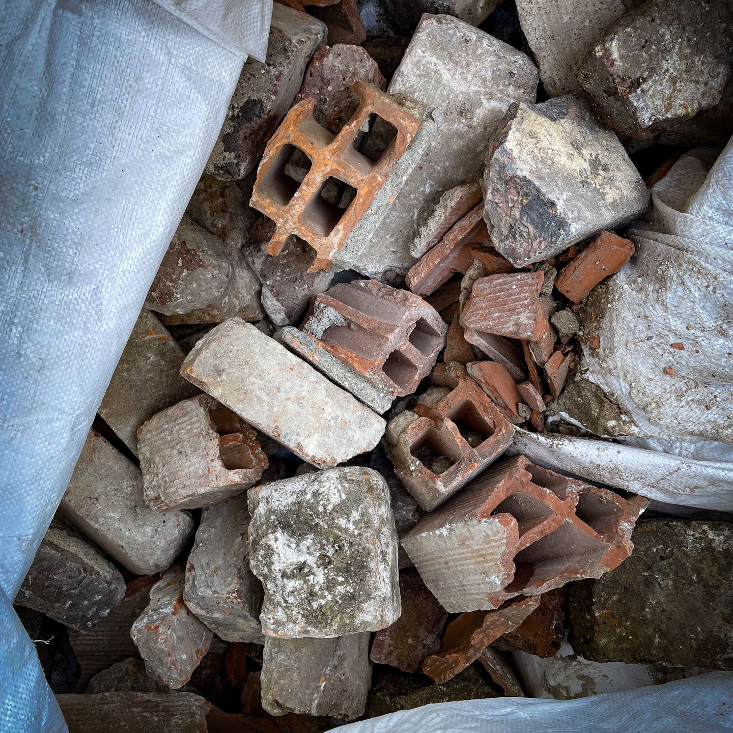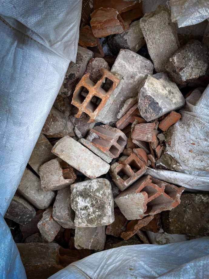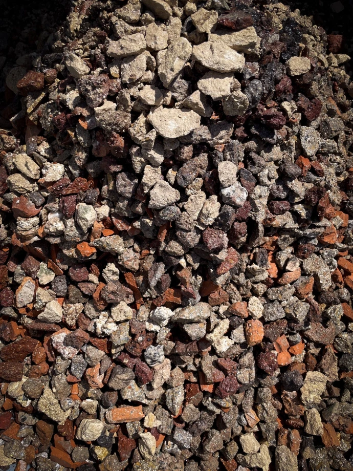 - Déchets minéraux (briques rouges, verre bleu, gravats blancs, etc)